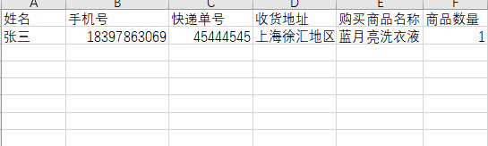 添加购买“番薯”的“钱六”的信息。电话与快递单号需要正确填写