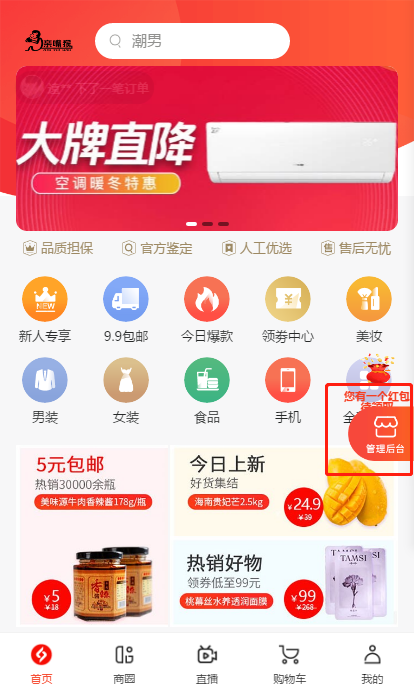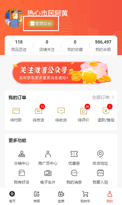在商拉拉平台中,商家进入后台需要在更多功能中寻找,这样会浪费商家的时间,而更新后,将管理后台放在上方,大大缩少时间,方便商家管理自己店铺。