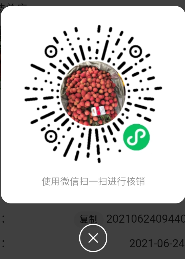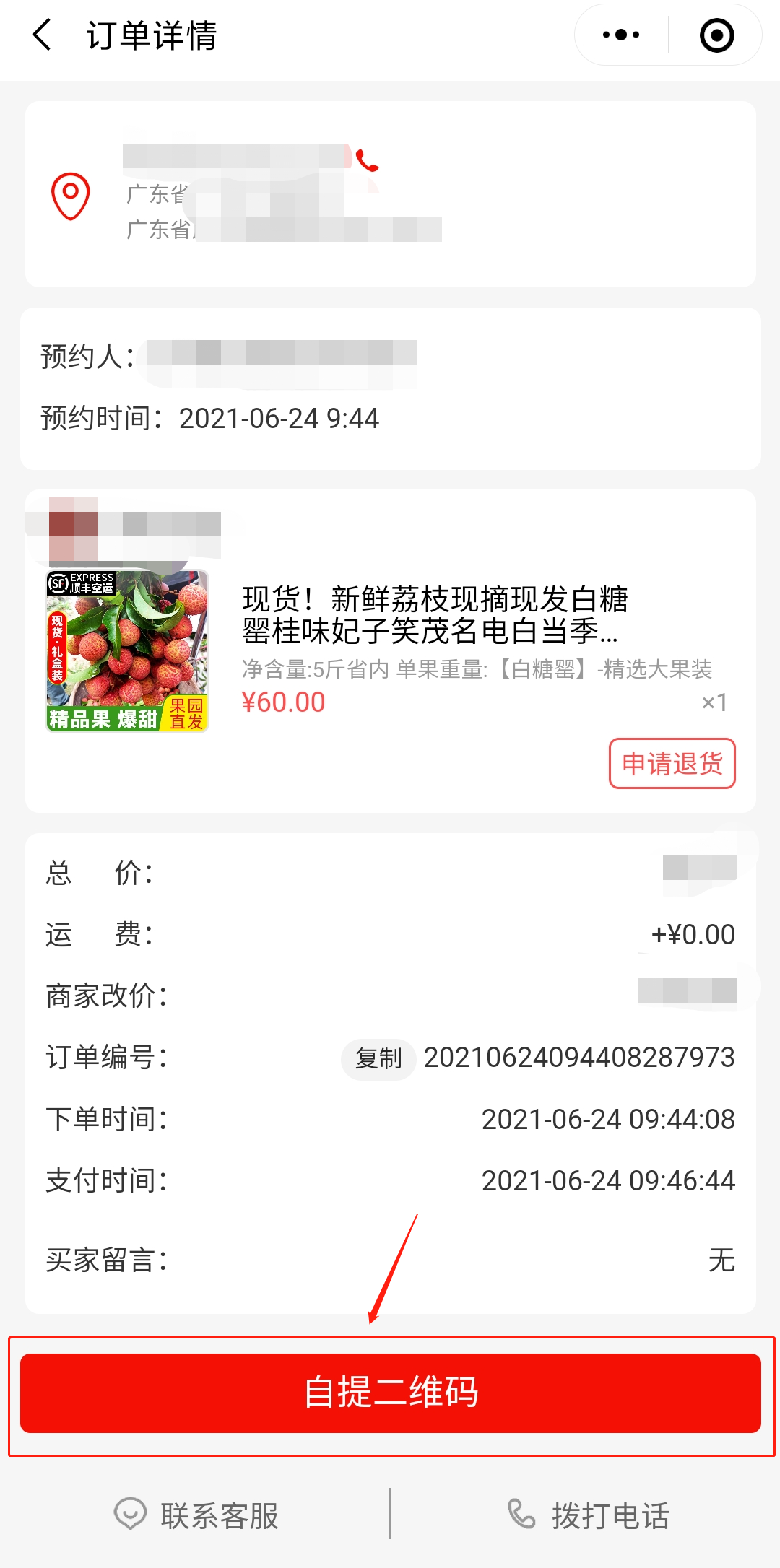 用户支付成功后,用户页面会显示一个自提二维码,用于上门自提时,商家核销使用,