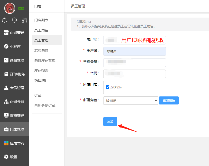 若商家想使用核销功能,则需要在门店管理中设置核销员身份,方可进行核销。