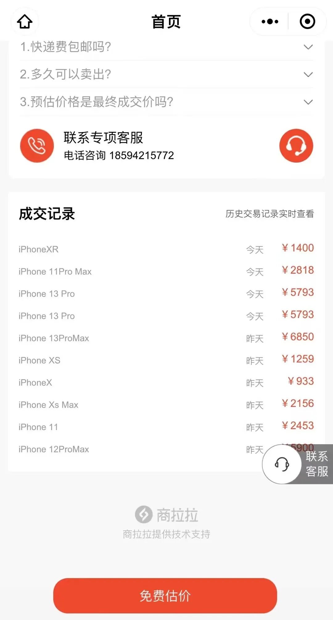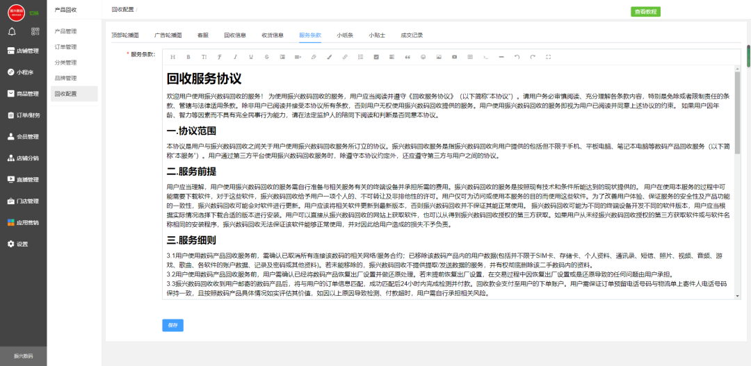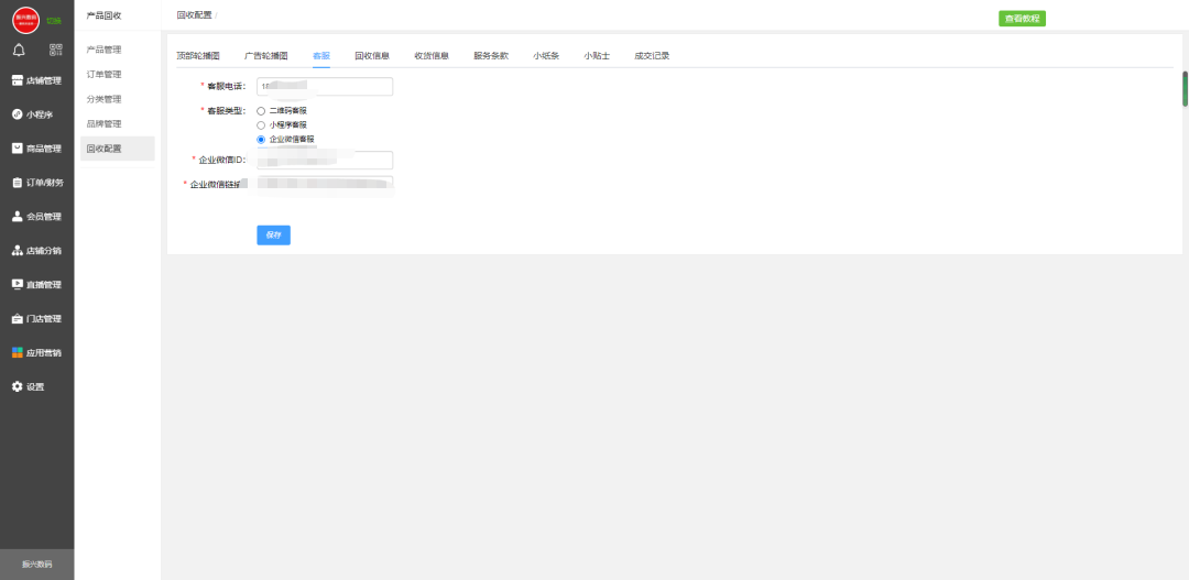 回收商品客服咨询设置