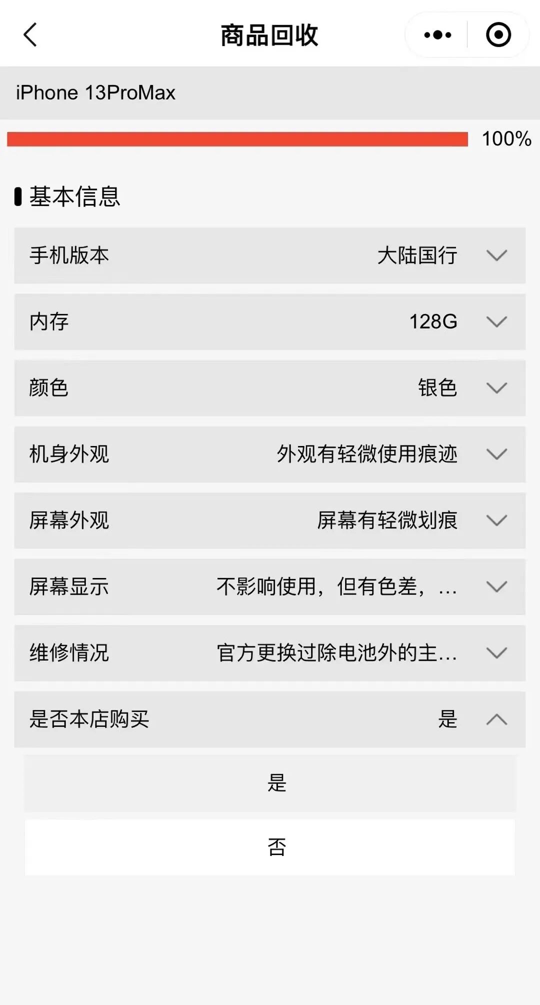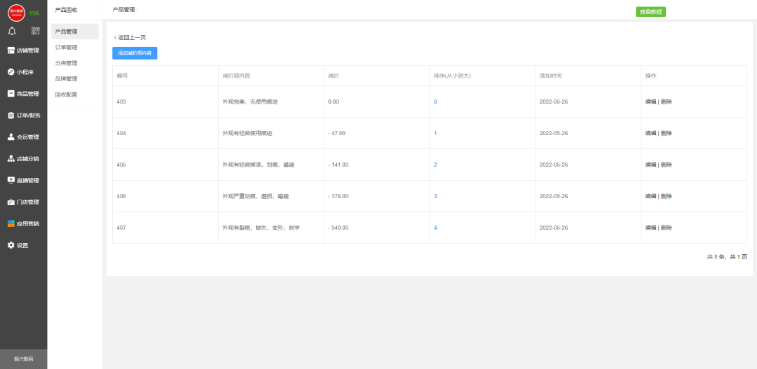 回收商品瑕疵减价设置