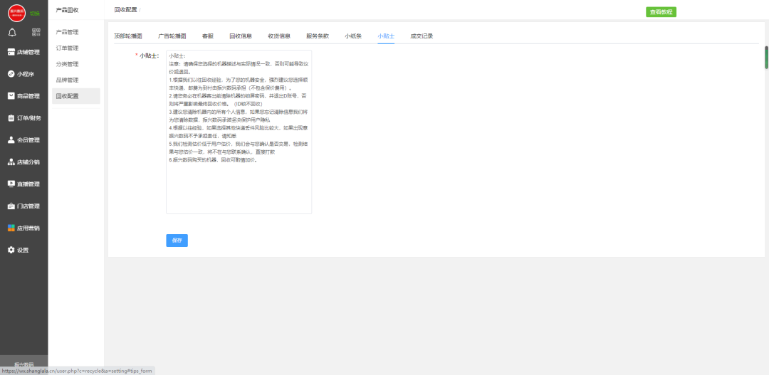 回收商品设置