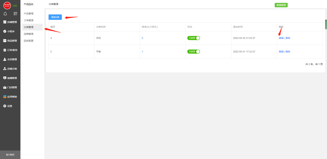 回收商品分类设置