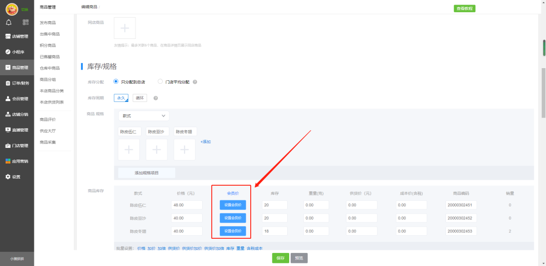 如果商品是多规格,则需要往下拉找到多规格设置会员优惠价。