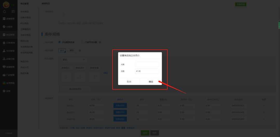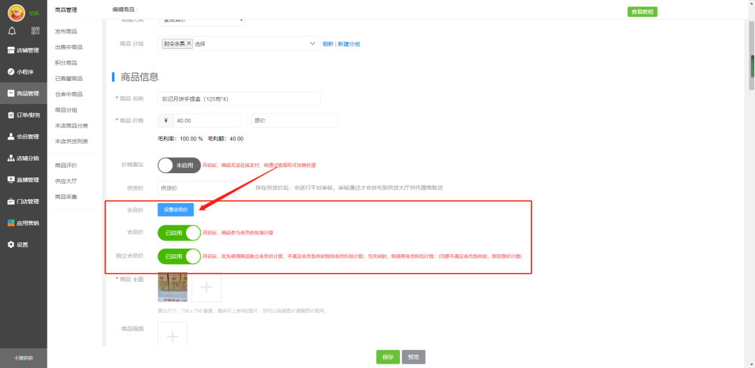 如果上方会员等级没有设置会员折扣价,则需要去商品设置会员优惠价。